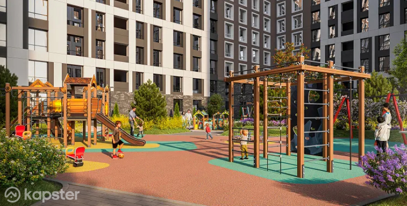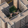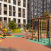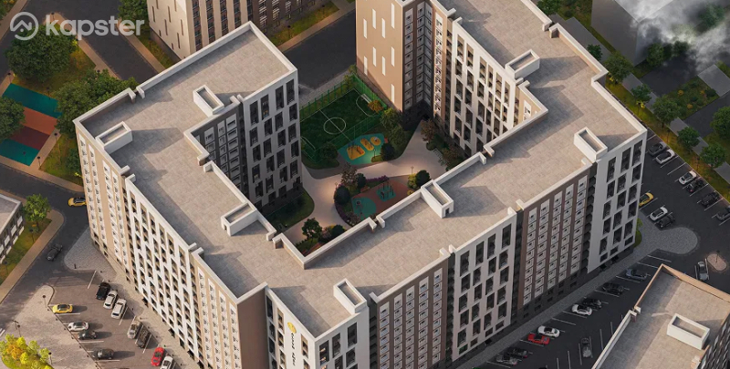 Во дворе предусмотрены прогулочные аллеи, зелёные газоны и цветочные клумбы. Для отдыха обустроены беседки и лавочки, а для детей и взрослых — современные игровые и спортивные площадки с безопасным покрытием. Формат «двор без машин» делает пространство комфортным и безопасным для семейного досуга.
