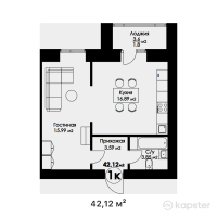1-ком 42,1 м²