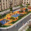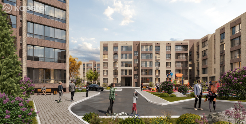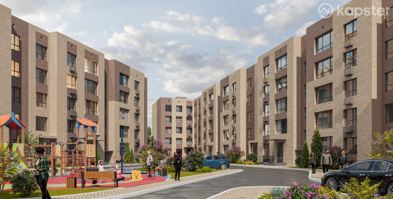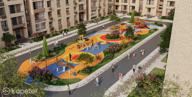 Во дворе предусмотрено современное благоустройство: уютные зелёные аллеи для прогулок, детская площадка с безопасным покрытием, оборудованные воркаут-зоны для активного отдыха и удобные колясочные на первых этажах для комфорта жителей.