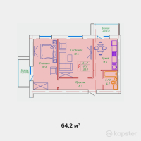 ЖК Washington — 2-ком 64,2 м² (от 35 310 000 тг)