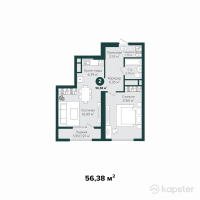 ЖК Tumar Tower Shymkent — 2-ком 56,4 м² (от 31 155 588 тг)
