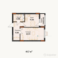 ЖК Амирель — 1-ком 41,7 м² (от 13 344 000 тг)