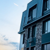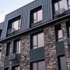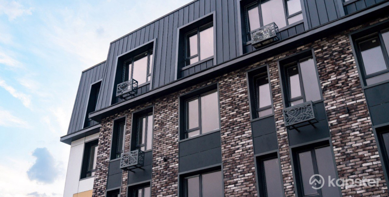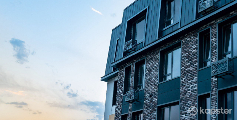 Фасады 4-х этажных корпусов выполнены с соблюдением четкой геометрии в серо-белой гамме, отделаны клинкерным кирпичом. Для каждой квартиры предусмотрена кладовая на первом этаже, а также наземный крытый паркинг.