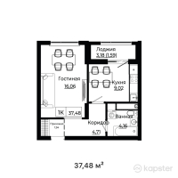 1-ком 37,5 м²
