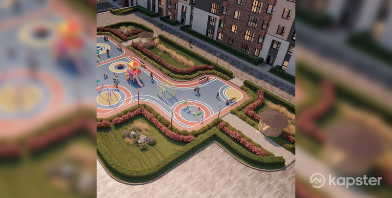 ЖК «Green Town» имеет дворовую зону для всех возрастов с детскими площадками, беседками и workout-площадкой. Двор закрыт от посторонних и автомобилей, обеспечивая безопасность. Также в комплексе есть магазины, салоны красоты и детский центр.