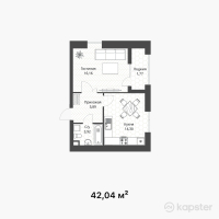 1-ком 42 м²