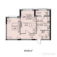 2-ком 61,4 м²