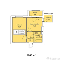 ЖК Кыран — 1-ком 51,7 м² (от 11 365 200 тг)
