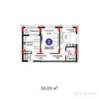 2-ком 56,1 м²
