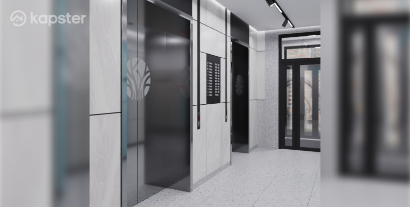 Фасад здания выполнен с использованием керамического кирпича и композитных панелей Sibalux. Это придает зданию стойкость к внешним воздействиям и придает ему эстетическое величие. Также предусмотрены внешние корзины для кондиционеров и ночная подсветка фасада.