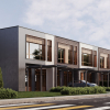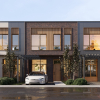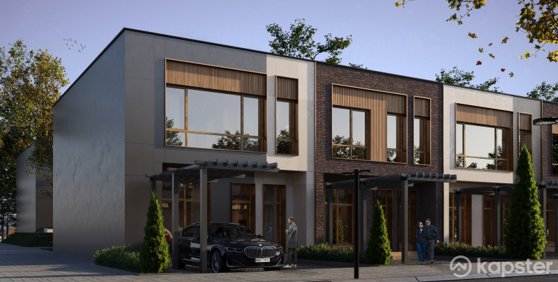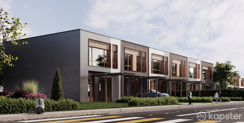Таунхаусы имеют экологичные фасады из натуральных материалов и инновационных композитов, с элементами озеленения и большими панорамными окнами.