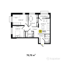 ЖК Turar — 3-ком 76,8 м² (от 38 380 000 тг)